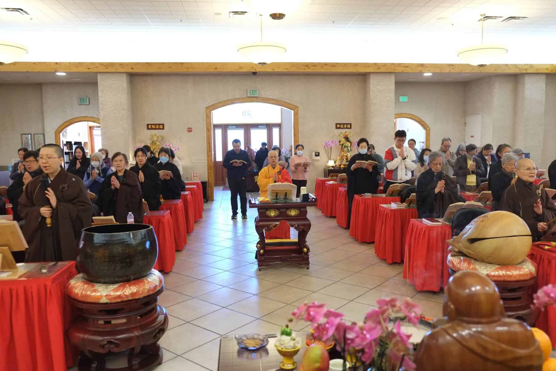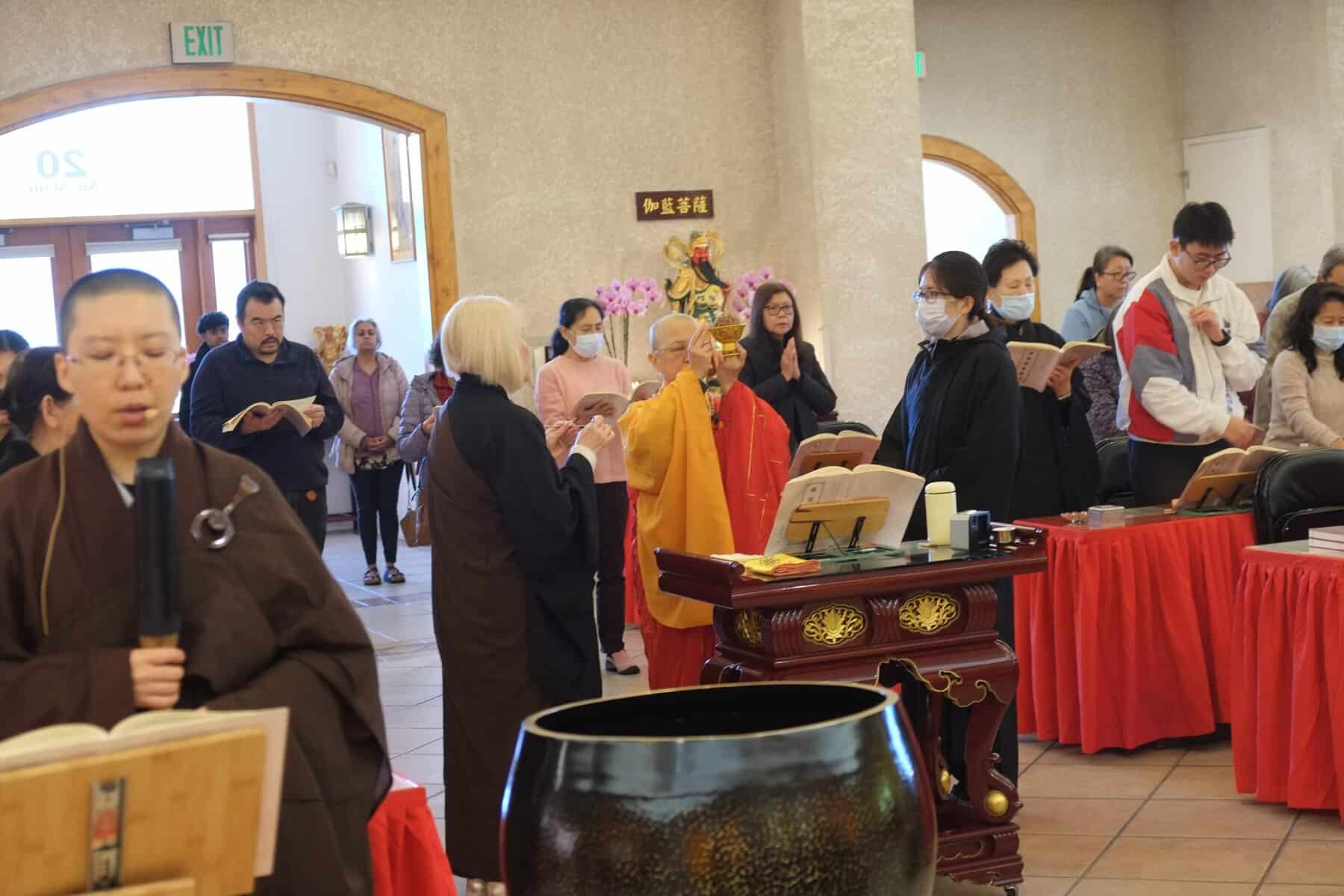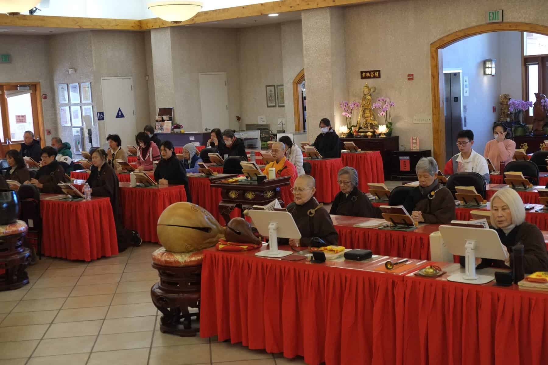 信眾跟隨常住法師虔誠念誦經文儀軌