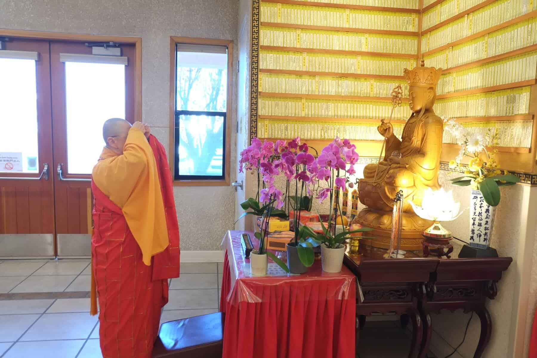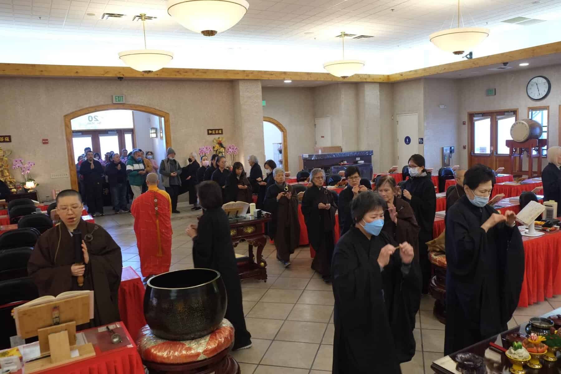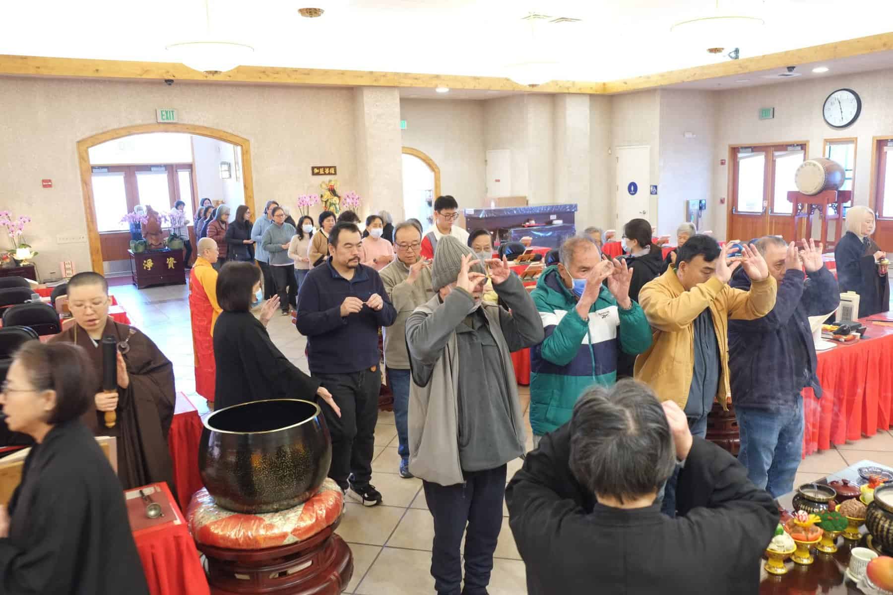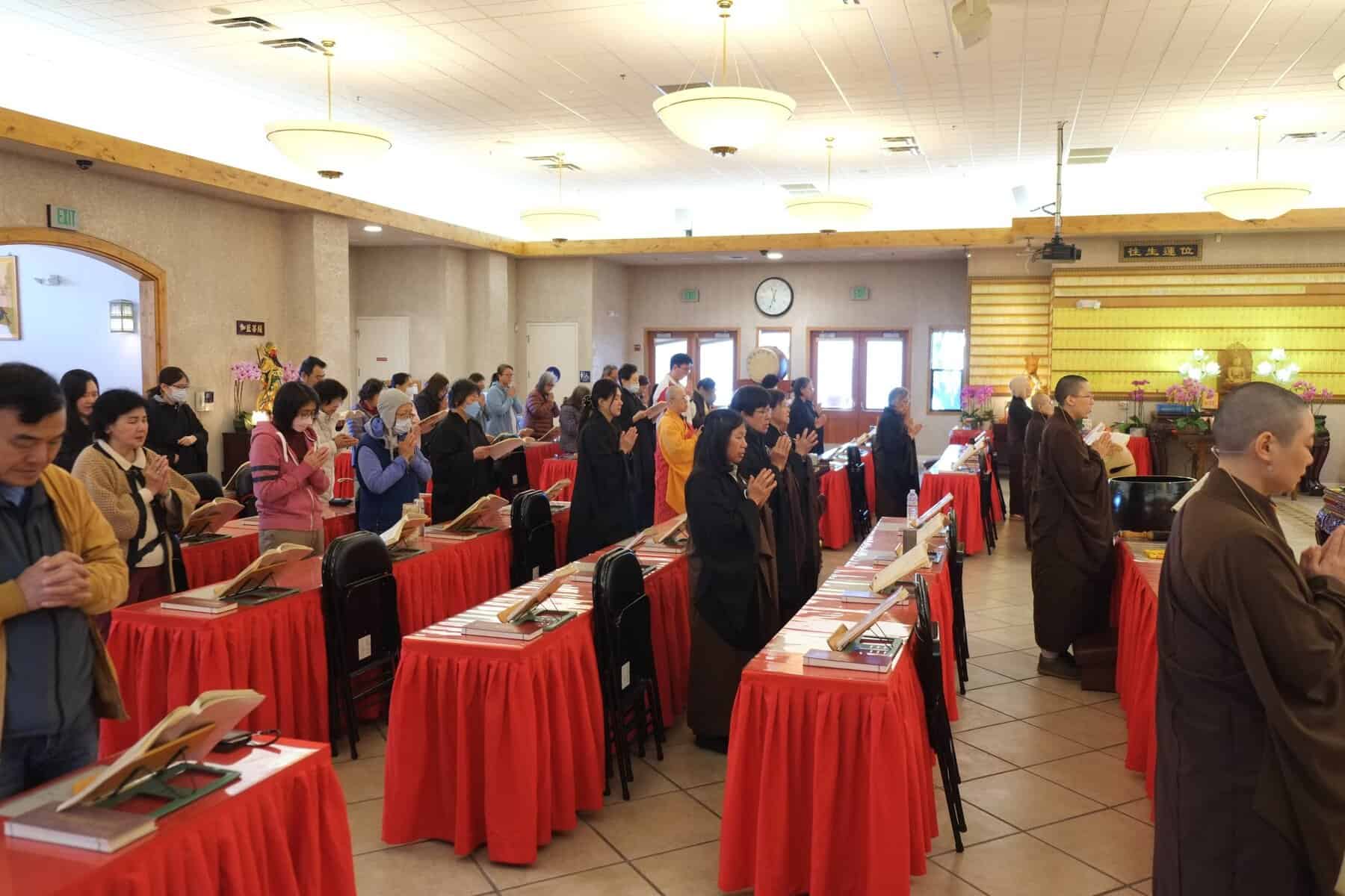 信眾跟隨常住法師虔誠念誦經文儀軌