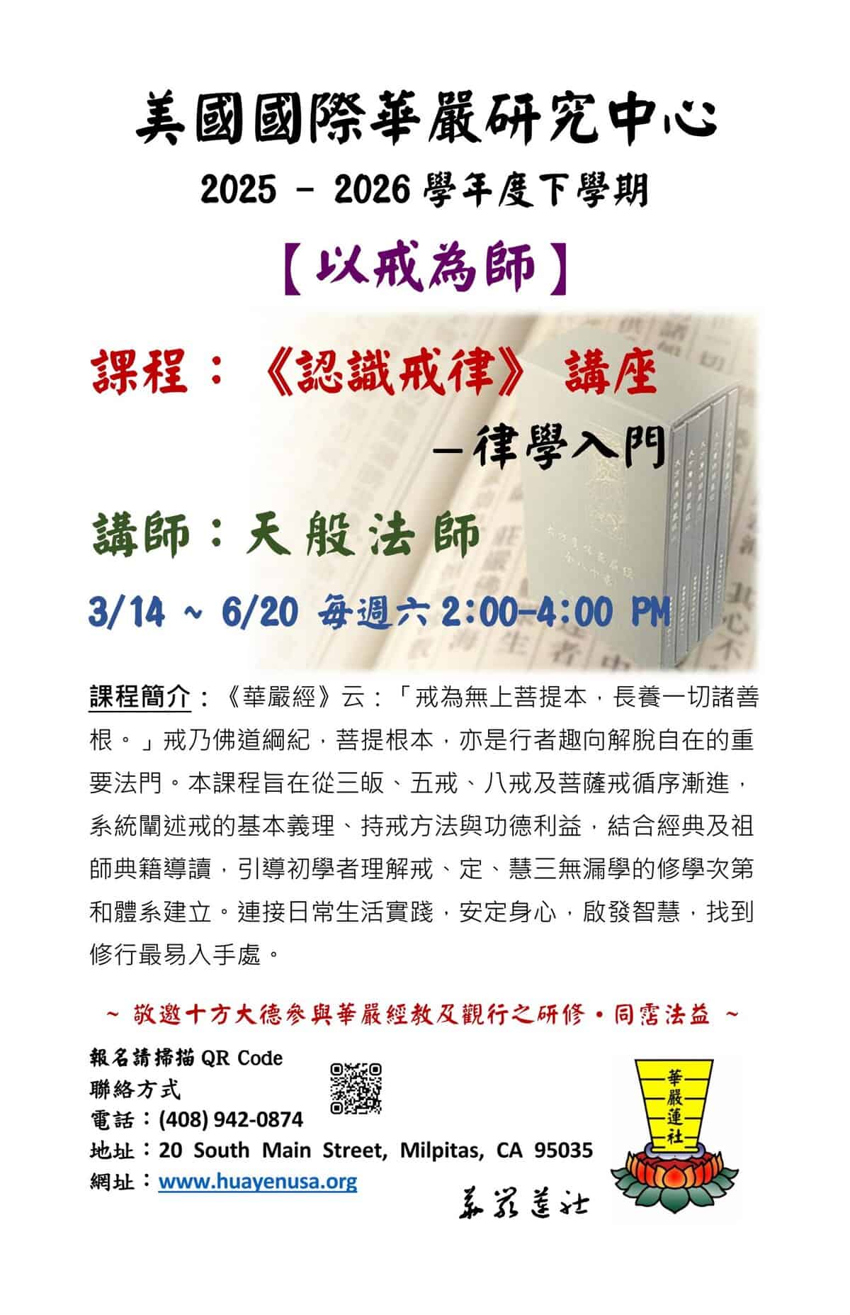 ICAS 2025–2026 學年度下學期【以戒為師】課程:《認識戒律》講座 — 律學入門